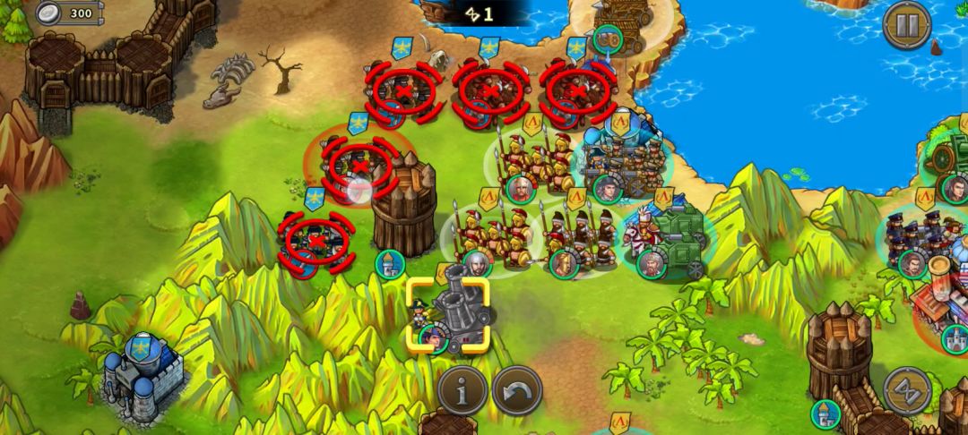 这关不难,正常打就行。一个地方需占领有三个要攻击的目标。一个需要防守的地方