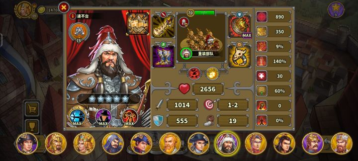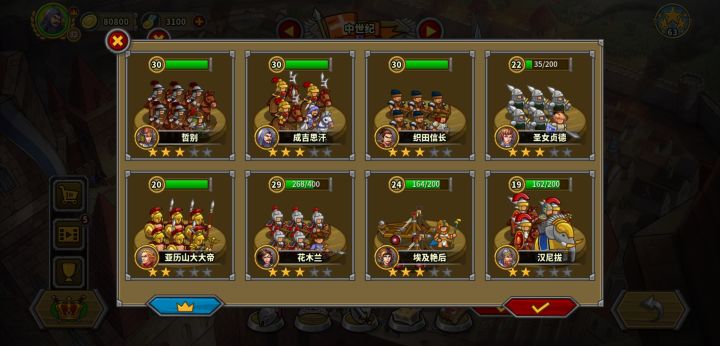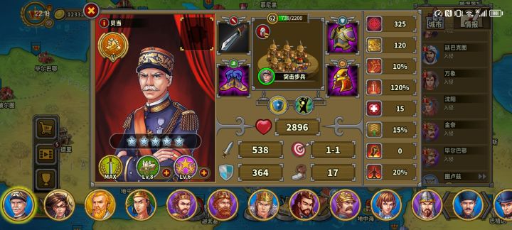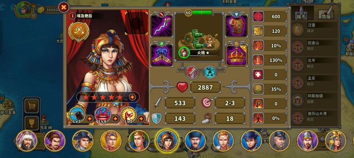 现在是第三时代,培养了前六个。我没氪金,所以选择了贞德和艳后这种平民的将。emm巴巴罗萨也不知道要不要培养,明天应该能招募到萨拉丁,亚历山大我也没再养才20级,只是身板比较高所以给了装备先用着。后面该怎么玩?反正推关卡不是很顺利,现在才二时代第三章。#欧陆战争5