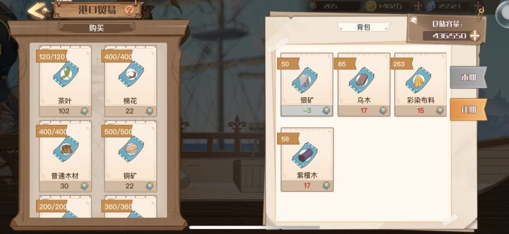 【官服】◆出货建议茶叶(102)彩染布料(67,最高价,有就出!)乌木(137,接近最高价,可出)金矿(65)紫檀木(146)◇上期推荐进货:彩染布料、乌木、紫檀木,这期都可以出!◆进货建议铜矿(22,优先重点进货!)银矿(38)棉花(22)◇建议重点囤铜矿,如果还有剩余空位,可进另两样【渠道服】◆出货建议铜矿(33)◆进货建议彩染布料(50,重点进货!)棉花(