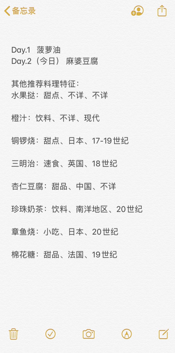 【今日推荐菜】麻婆豆腐Ps:其他推荐菜线索可参考下图【摆摊价格】在满经验(1000)情况下:🌟当日推荐料理(如下图)70%几率+88单价🌟其他非推荐料理(如下图)74%几率+84单价🌟服务员(+10%几率)1. 优先用料理本体飨灵2. 其次关东煮【关于养菜】1. 在飞行棋中踩到料理格(有马车就直接用),可升级2. 料理格是随机出现的,要么没有,要么有2格Ps:你只能不
