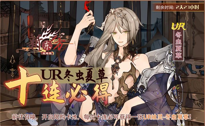 【破土成蝶】虫草复刻卡池时间:7.16-7.18(3天)消耗:大蒜、钻石、氪金限定飨灵:Ur-冬虫夏草※Tips1. 副本ur飨灵的复刻常规形式,普遍十连保底1只(极低概率2只),即一只虫草≈4800大蒜≈3200钻2. 虫草,大招流大型增伤增速的半奶妈,特点是大幅增伤大幅增攻速(可以让输出飨灵带攻击堕神),在有拉条(纳豆)的情况下,大招buff可以全覆盖,对PVE增加伤害效果显著(比