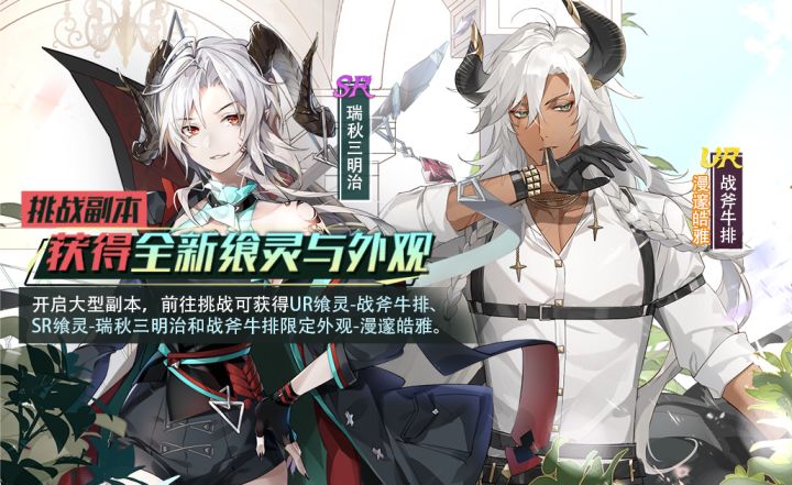 亲爱的御侍大人:感谢大家对食契大陆的关心与喜爱,【夏日庆典活动预告(第一弹)】活动预告来啦!快来看一看吧!❤★活动一 挑战大型副本获得UR战斧牛排等全新飨灵与外观★活动时间:7月29日00:00~8月8日23:59活动名称:禁忌幽灵活动描述:埋葬在历史尘埃下的禁忌,徘徊于死亡之地的幽灵……当正义与邪恶的边界被搅乱混淆,他们是否仍能,走向光明?活动期间,开启大型副本活动,御侍大人通过挑战