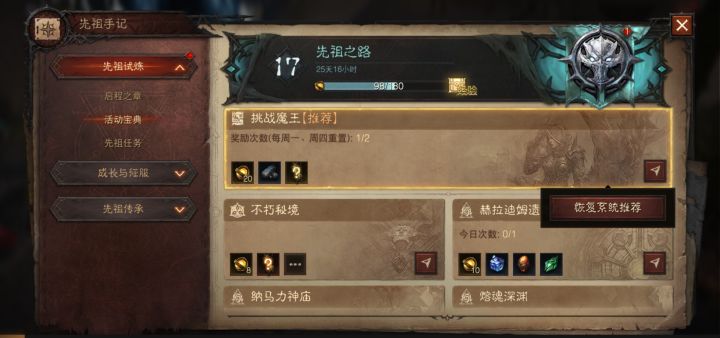 先祖之路通行证的挑战魔王任务无法完成?火男420打了四五遍了,挑战魔王任务还是1/2,这是必须打不同难度,还是必须打不同魔王(火男加冰女)这种才能提交完成吗?