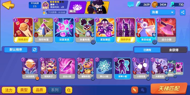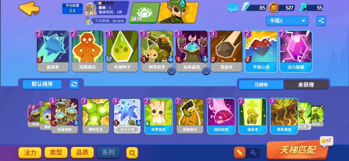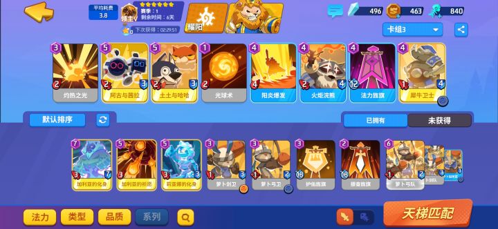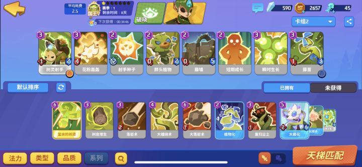 抽的金卡全祈愿,合卡只合的起落幕的单金核心,破晓就蓝白凑合玩了,刚弄上国王,还是很不容易的。因为碰到调转毛头必输,就算是电脑,他有调转毛头你一不小心也有可能输,那张卡就是那么离谱。还有核桃也是紫色必带,一卡吃穿落幕蘑菇菌毯,反正这些卡我都抽不到,就这样勉强过过日子罢了,紫色多建议上狮子这种极端的不带随从,然后碰到高牌破晓他排序好你也打不过,蓝白卡组不要抱太高期待,尽量用技术弥补,技术还是占一定