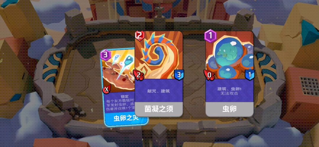 1.卡牌详情2.卡组特点l 平均耗费低l 远程攻击随从多l 随从铺场快3.卡组弱点l 随从大多数为建筑,会被AOE法术克制。l 法术卡牌少,清理隐匿随从的效率低。4.战斗技巧l 选卡时期:起手留牌的原则为射手菇>吞噬菇>虫卵>菌凝之花>噬菌蛛。l 对战前期:以地图纵向摆放的原则,前排摆放虫卵(抵挡伤害),中间摆放射手菇、菌凝之花(炮台输出),后排摆放吞噬菇(等待BUFF)。l
