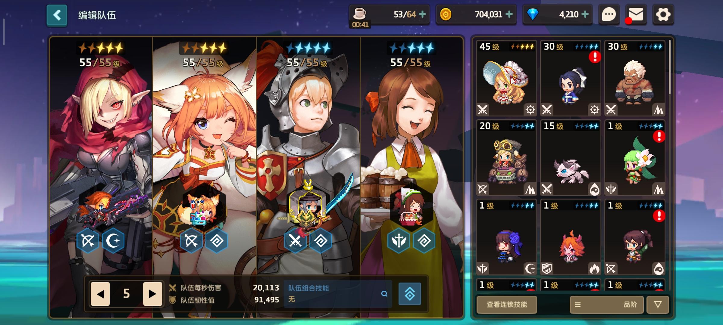 氪度:月卡+新人礼包(零氪应该也可以凑出来,都是前期必练的角色)阵容(常规)双t+土花(68保证输出)+土奶+运气阵容(逃课)单t+水弓凯瑟琳(五星1级)+土花+土奶练度不用太高,但也不能低,土盾临时拉的63,装备拉个50觉醒点一圈,至少确保在开出奶妈连锁的时候全员存活。土花秒伤有一点要求,要确保t活着的时候,能多压血线和多秒几个杂鱼。角色具体练度如下站位如下剩下的交给运气。逃课打法