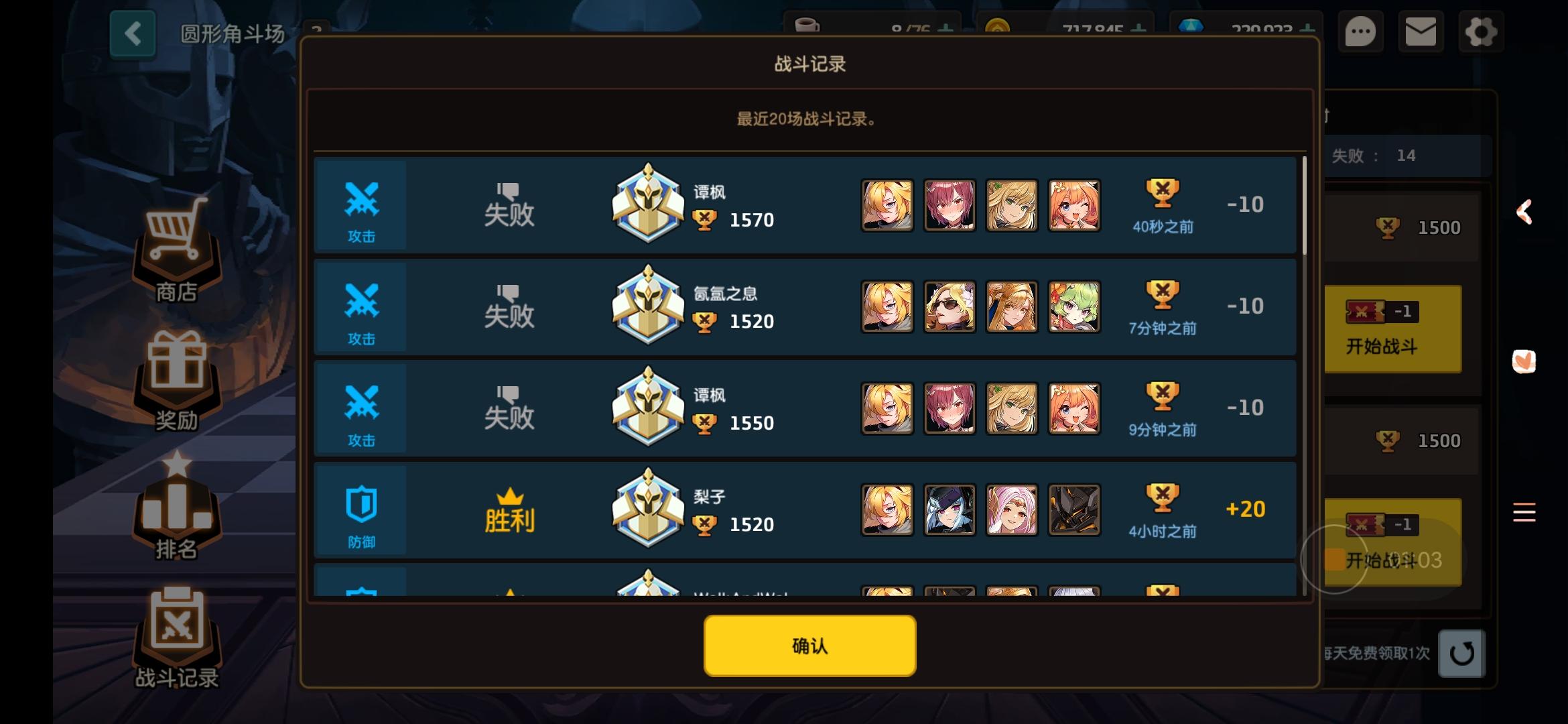 早上 圆形竞技场 老是数据异常 打了四场 赢的那场没显示在纪录里 也没加分 输的三场都扣分了 真有你的。。。早上1540分 战斗纪录里只有输了三场 我还一场呢 公会战也一直提示数据错误。。