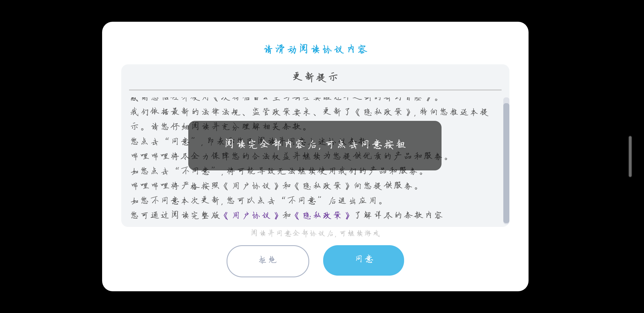 这什么东西,能不能改下,不看直接点没用,看完点同意也没用,知道里面蓝字有多少吗,盗梦空间呢,这哪看的完,这么多哪里找出来,少看一条就不让进吧不会,我是卡这了。