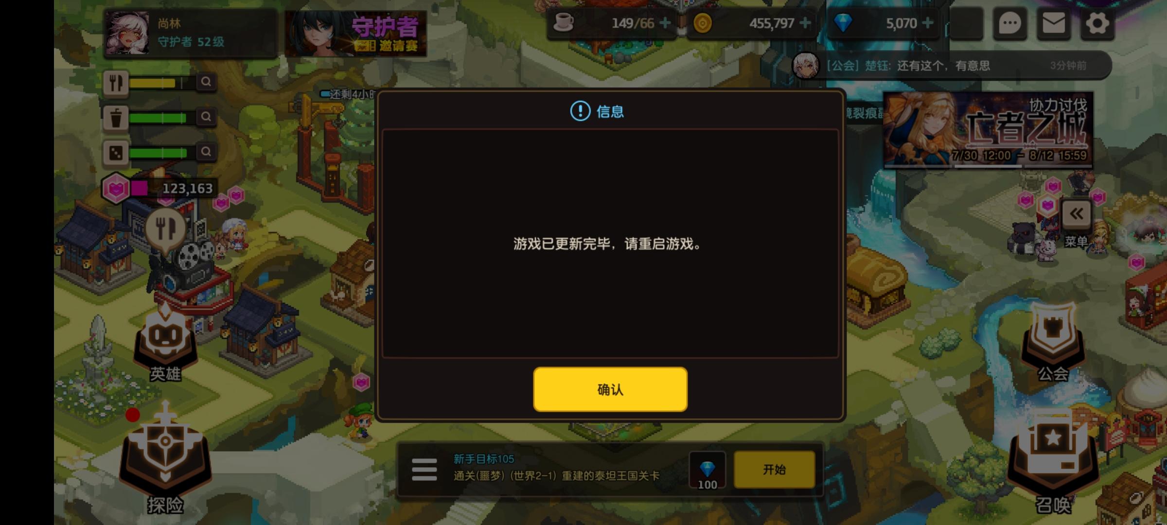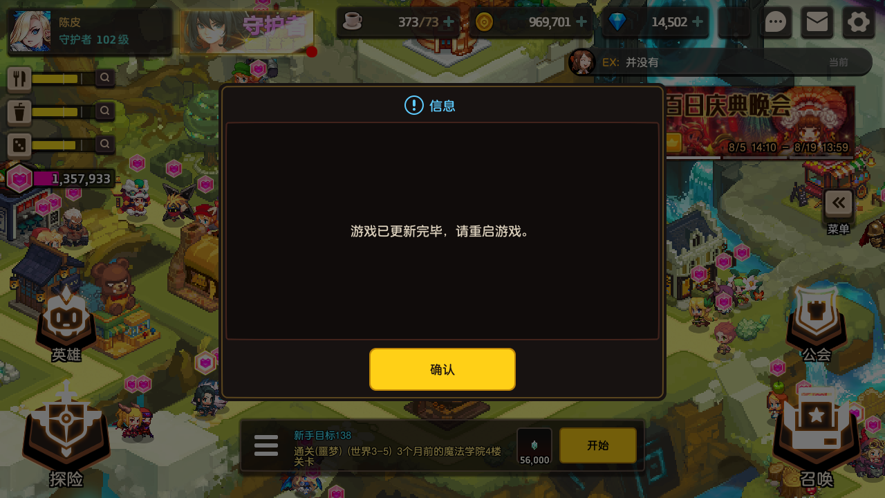 打世界探索第一关时发生闪退 导致过关了但没拿到奖励