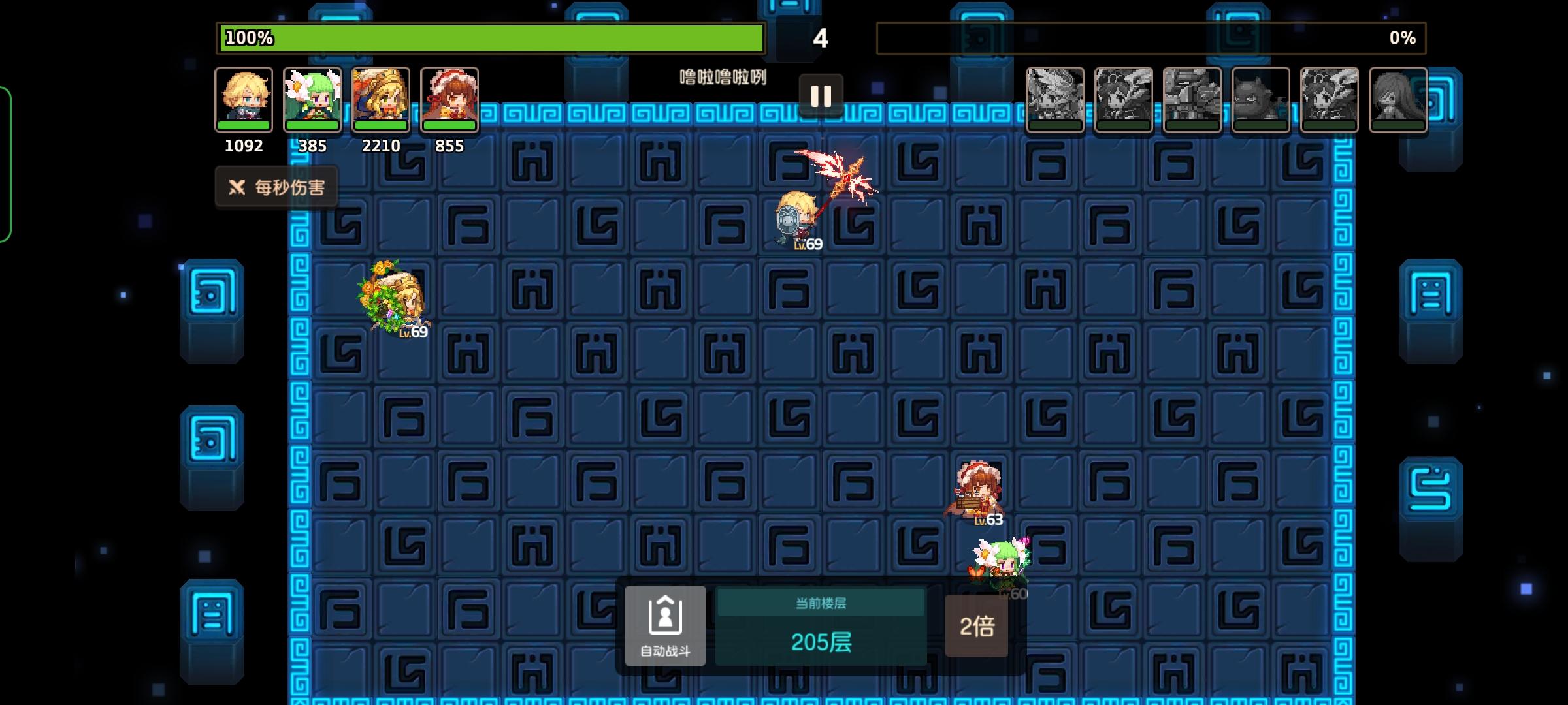 电梯205层,好恶心,远程免疫就追着我土花打,刚刚眼看着就要磨死了,时间到了两治疗拖着公主放技能打过去了