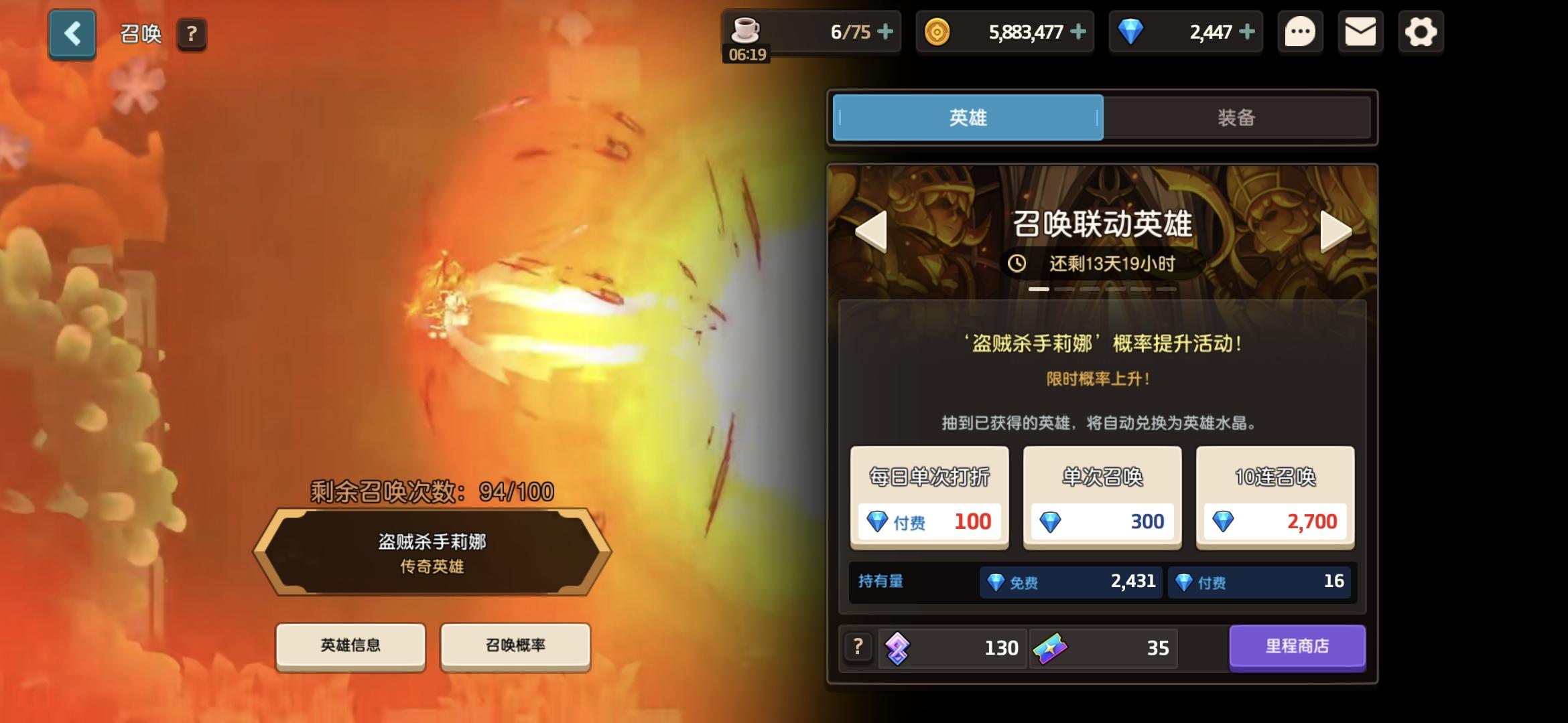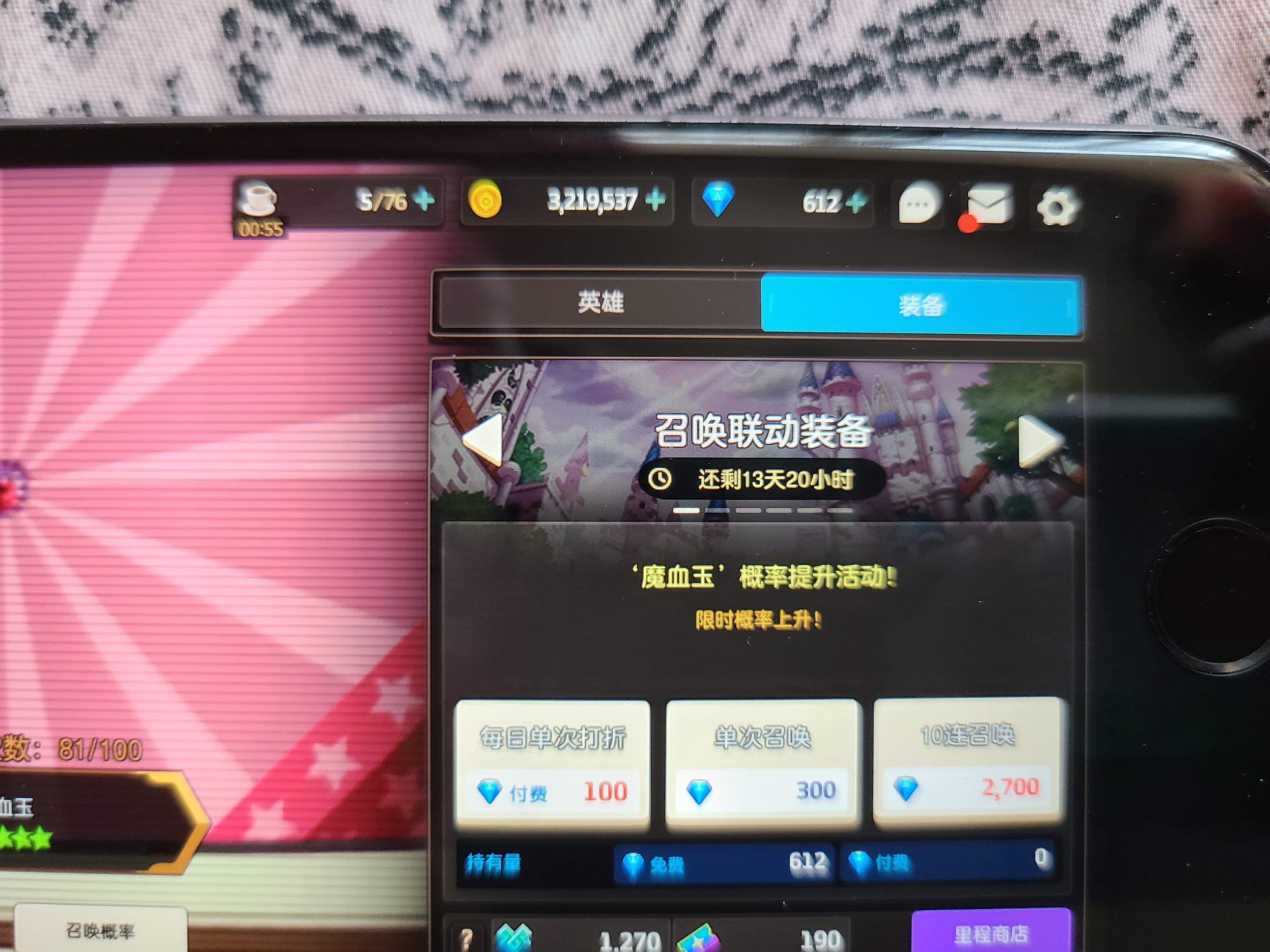 太刺激了,5w钻,抽到剩了600终于丽娜加专武齐了😭😭😭