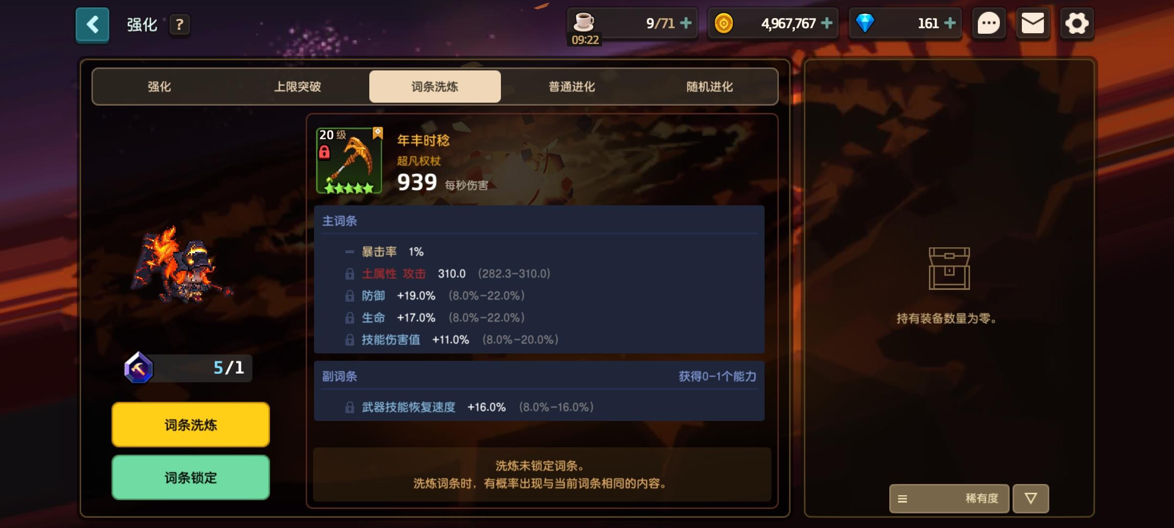 才发现装备普通进化会洗词条