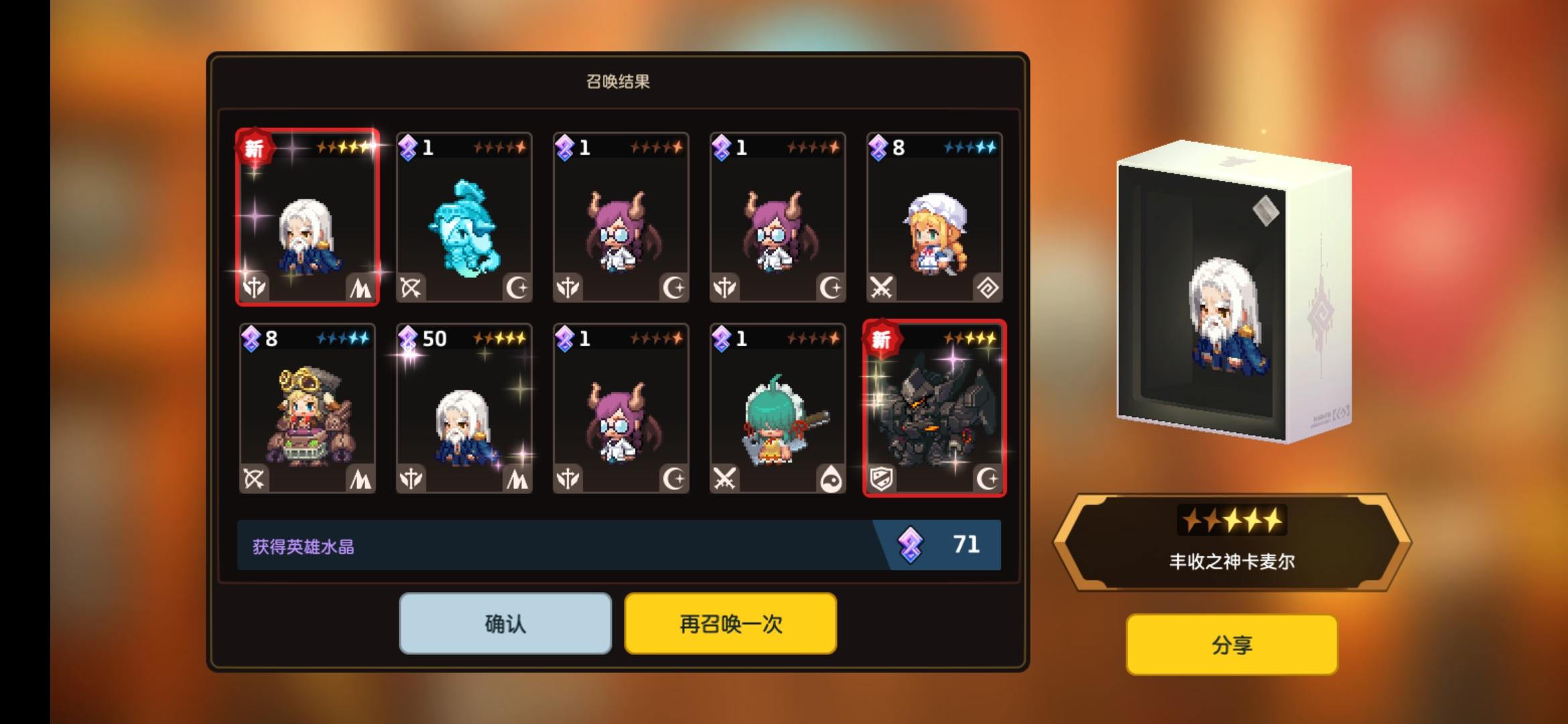 老头好出,专武难出,去抽专武,多少十连都没出,然后刷图准备去换了,但是又给了五个召唤机,单抽竟然出了,心中毫无波澜,不过老头子有专武和没专武差别真挺大的