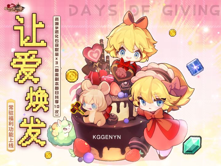 【让爱焕发】感恩有你,常驻福利模式上线!💥 今日维护结束后,资源副本、进化石副本获取倍率提升,每类副本每日共享10次喔,快前往扫荡!💥 仔细看图,有惊喜 ~( ̄_, ̄ )