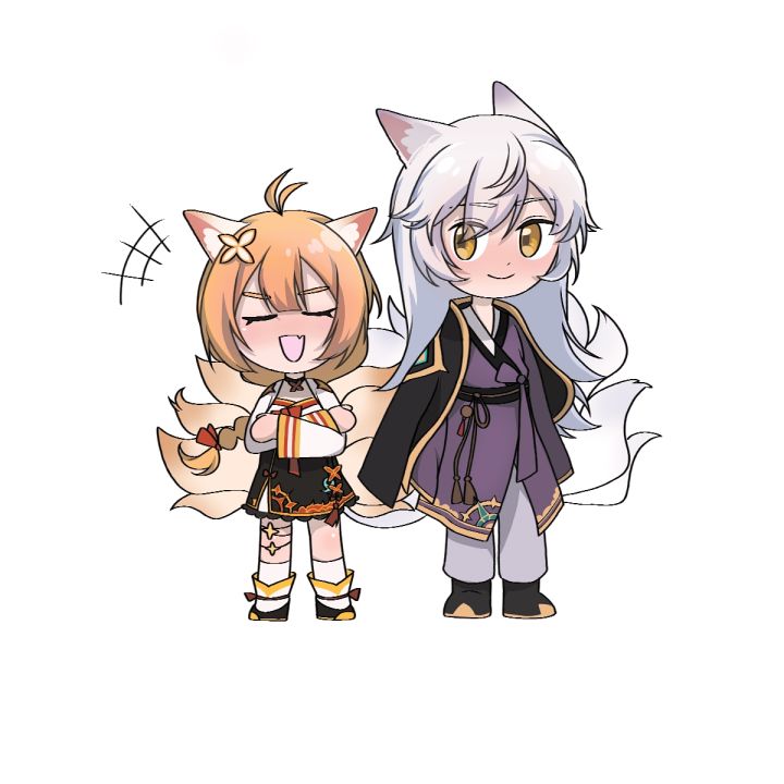 两只狐狸可爱滴捏🥰🥰🥰🥰画这个好累,不过作为玩到现在的开服玩家一幅坎公同人都没画过的话,还是有些不像话的,于是为爱发电一下#同人