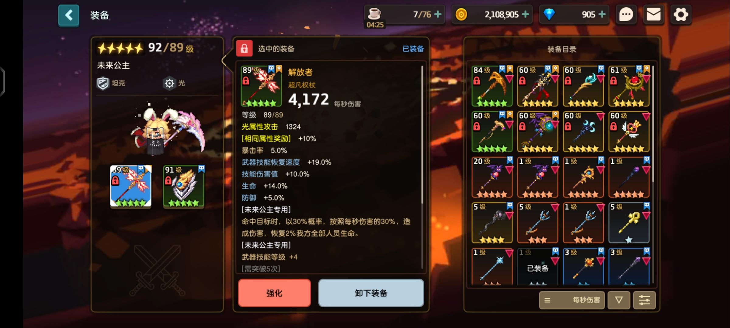请问各位大佬们,我是该换公主的专武还是这个土辅的专武啊?或者说囤着先不管?目前只能换一个,还是说通过世界奖励,然后两个都要?#萌新求助