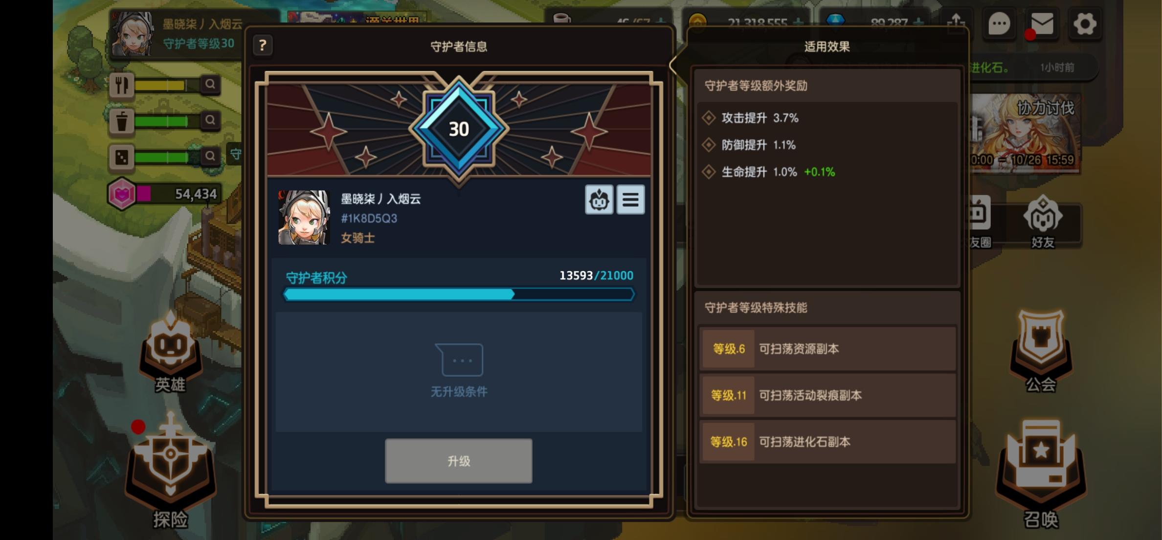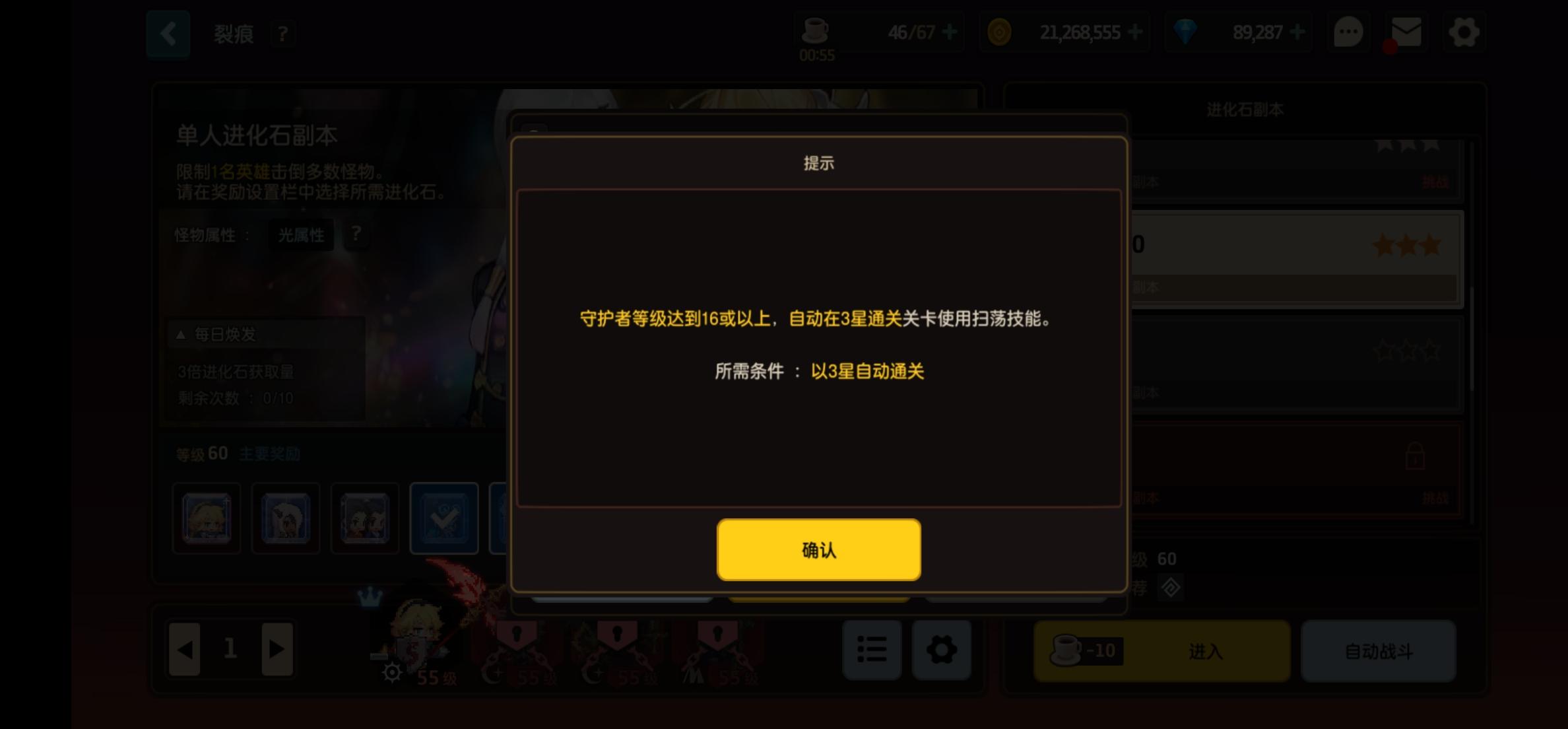 三星通关,守护等级30,之前的关卡能扫荡,60级的进化石扫荡不了。这个是不是bug