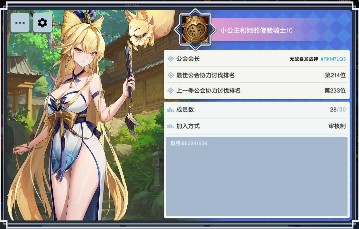 公会名:小公主和她的傻脸骑士10上期排名233没什么要求,活人就行了。