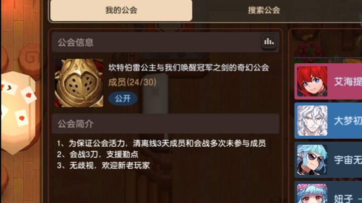 公会名字:坎特伯雷公主与我们唤醒冠军之剑的奇幻公会