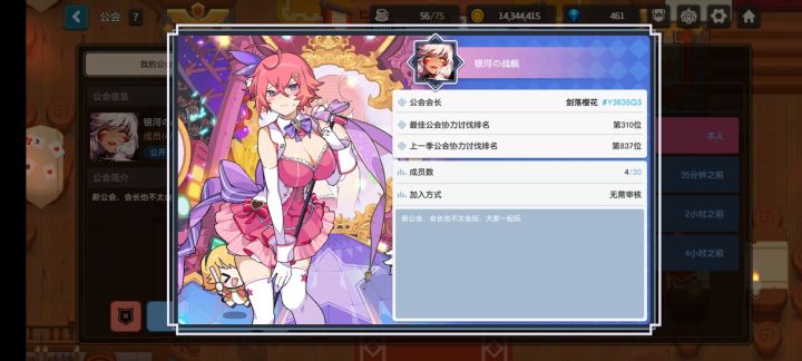 新公会,老会长脱坑了,我接手了欢迎萌新和大佬加入带我们一起玩,会长也不太会玩
