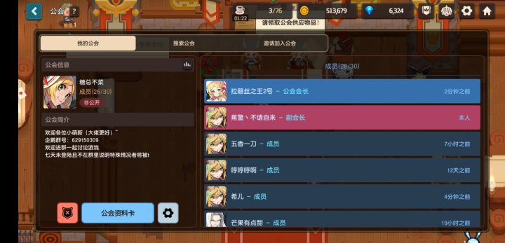 公会收人了来长期要稳定大佬,目前公会都是小时内在线22人