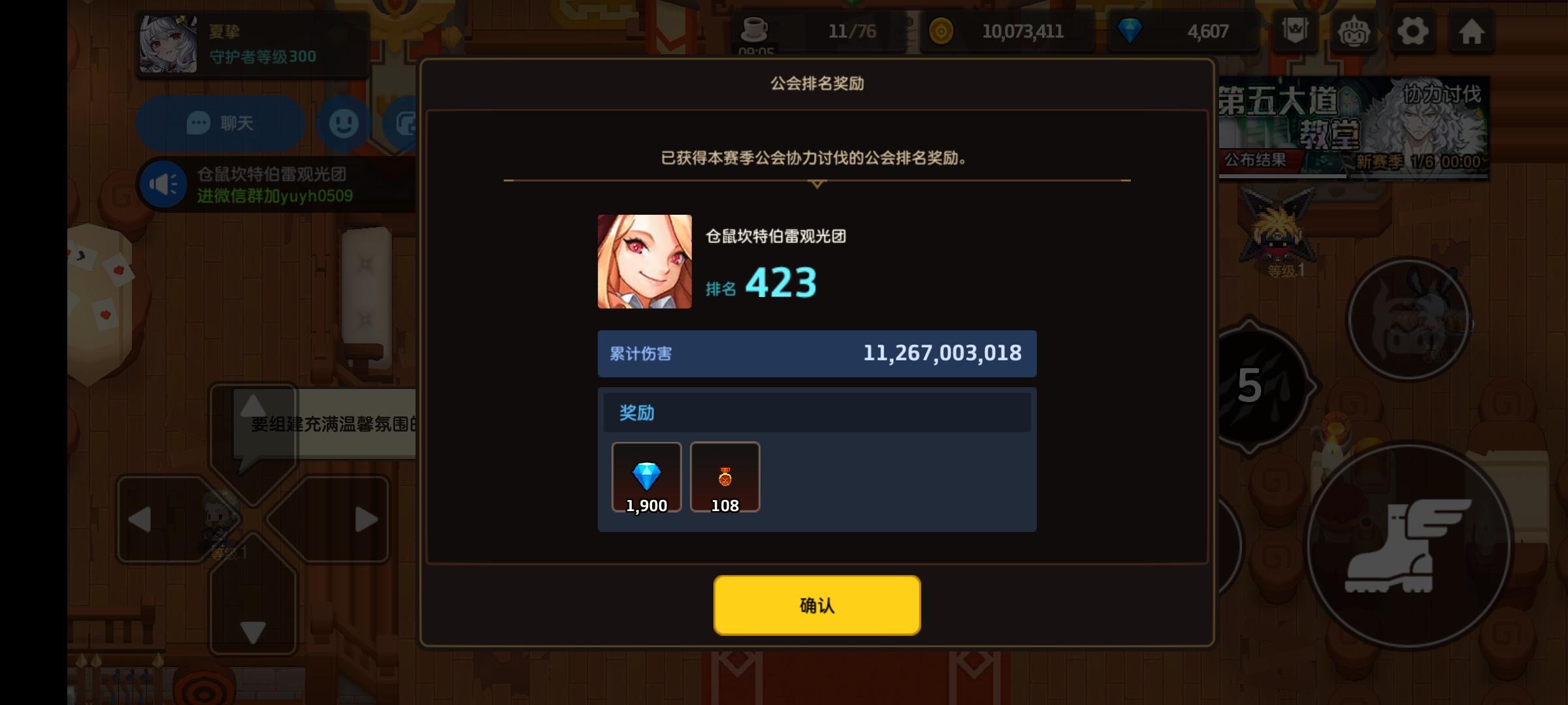 1300左右休闲公会,目前目标是前1000,没有群,所以不!必!担!心!社!交!恐!惧!因为前会长摆大烂所以出刀的人很少,几乎是有人来打就能进前1000