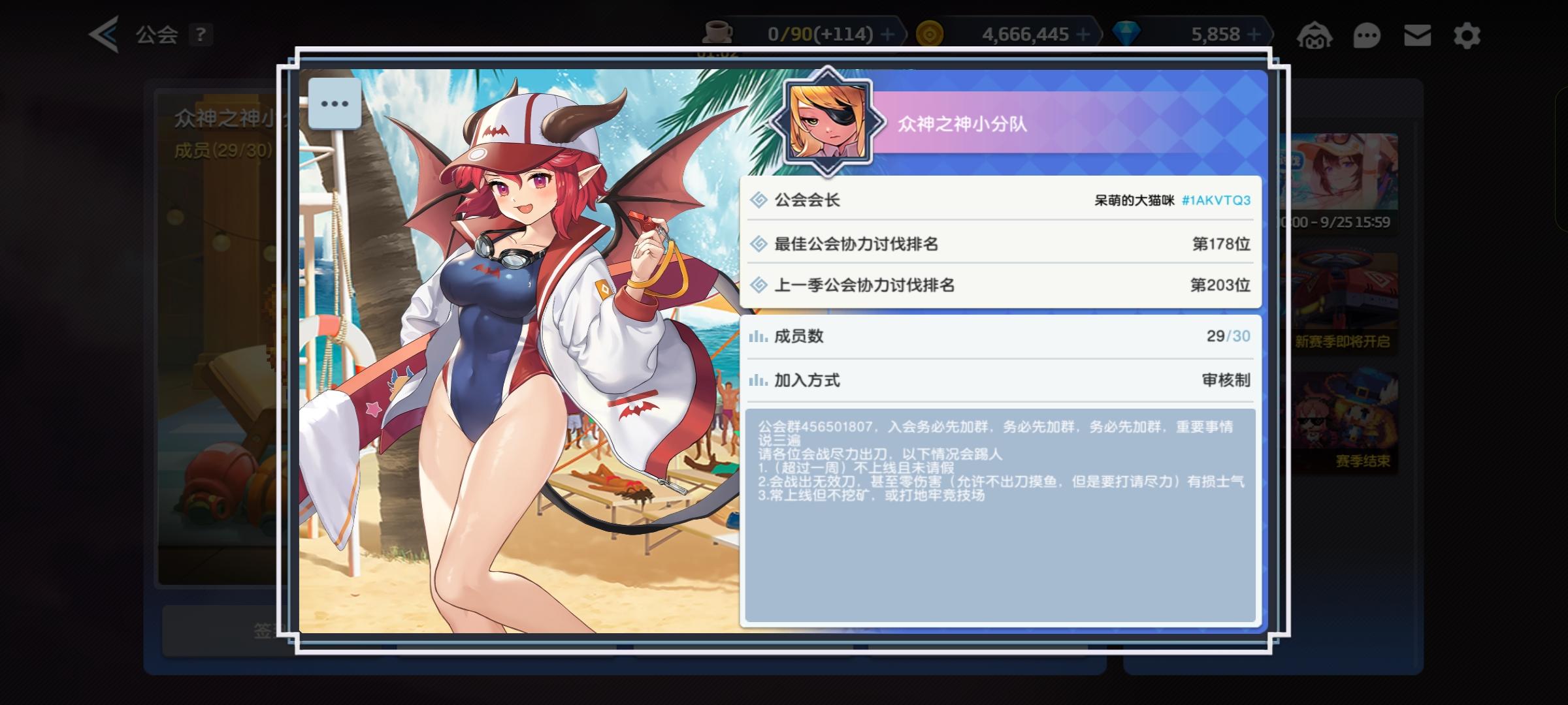 200公会招收1名活跃玩家,练度略有不足可视活跃情况招收,详情入群交流大致需求:整期总伤3亿以上,需每日三刀出满,拥有足够的box以及操作熟练度,能够打出与自身相符的伤害,保持游戏内每日活跃即可欢迎各路萌新大佬入会。群号 1059115618