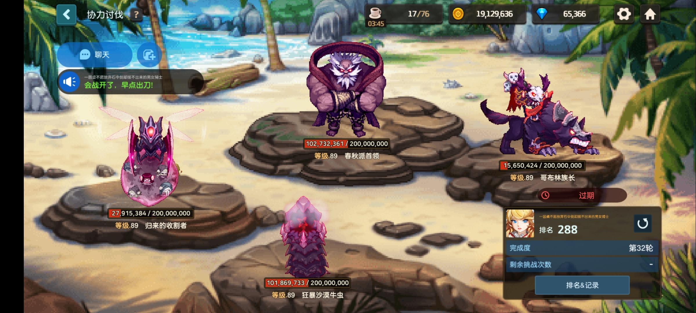 b服288会招4名2.4亿大佬!公会名:一圆桌不愿放弃石中剑却拔不出来的男女骑士,赛季排名288(海岸救援队,出击!赛季),欢迎各位大佬加入。要求:1、本期伤害2.4亿以上2、加微信群,不排刀但每晚会提醒出刀3、尽量配合打难打的boss有意者加微信群