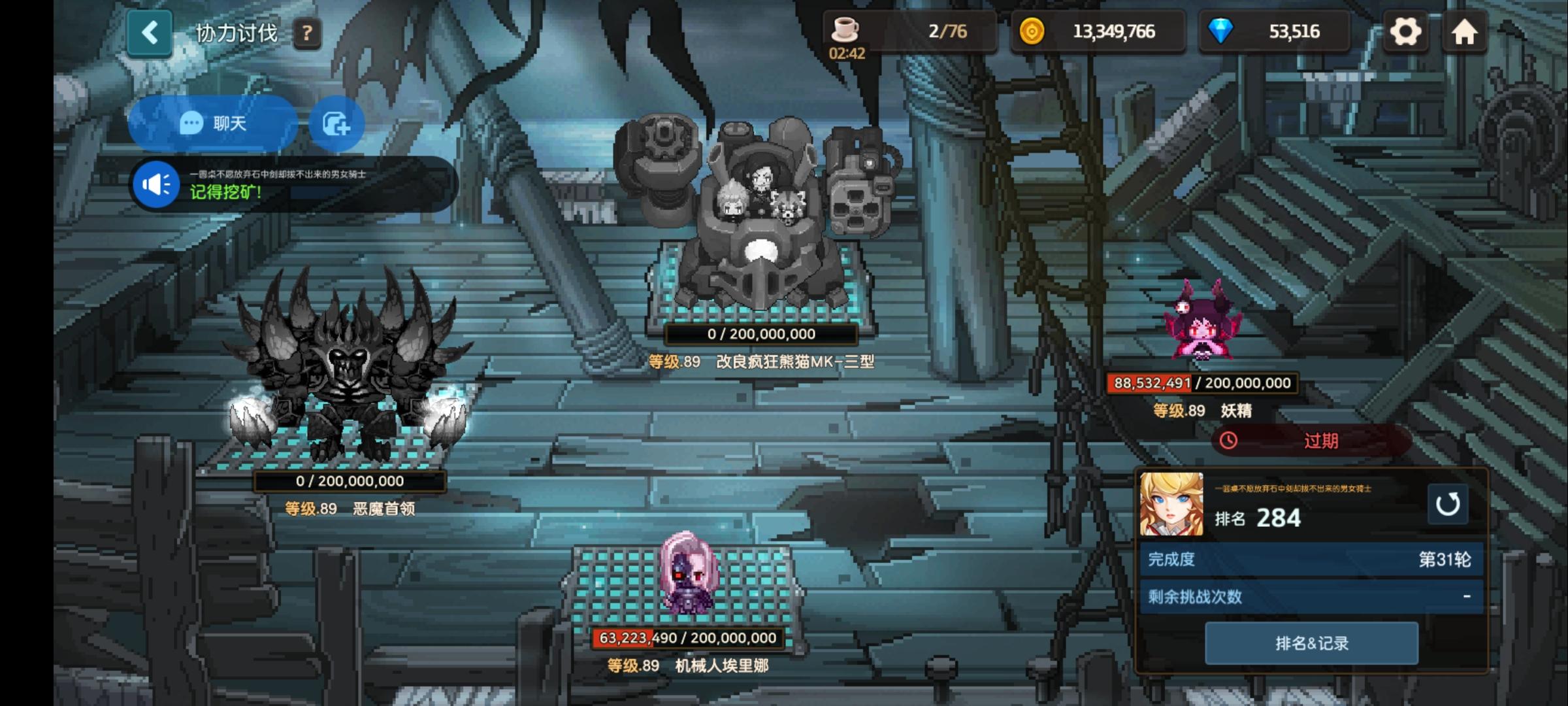 因为公会好多老人退坑,20人打只能到200+,满人能100+,所以降低要求希望能多多吸收活跃的骑士89+的日均4000就ok啦,欢迎各位骑士进来水群呀可以加群346593249