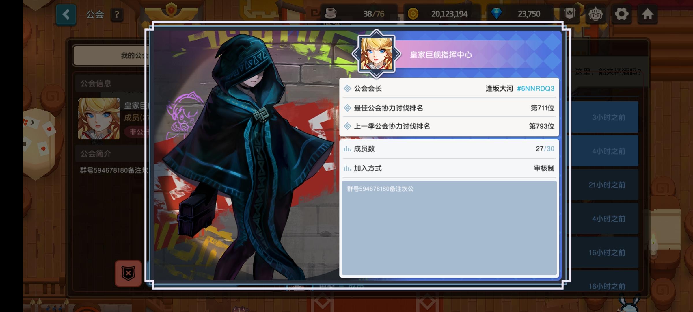 需每日三刀出满拥有足够的box以及操作熟练度保持活跃即可入群展示阵容“Cookie坎特伯雷根据地”收人了!公会目标:保500冲400人员要求:总伤5亿以上,出满三刀,能够打出与自身相符的伤害,一定的活跃度(公会每日签到)其他情况:本会为pcr公会“Cookie”名下坎公骑冠剑分会,本质上也是个休闲公会,没有太多的条条框框,群内氛围和谐,可以一起玩其他游戏,甚至还能一起打公会战。喜爱成