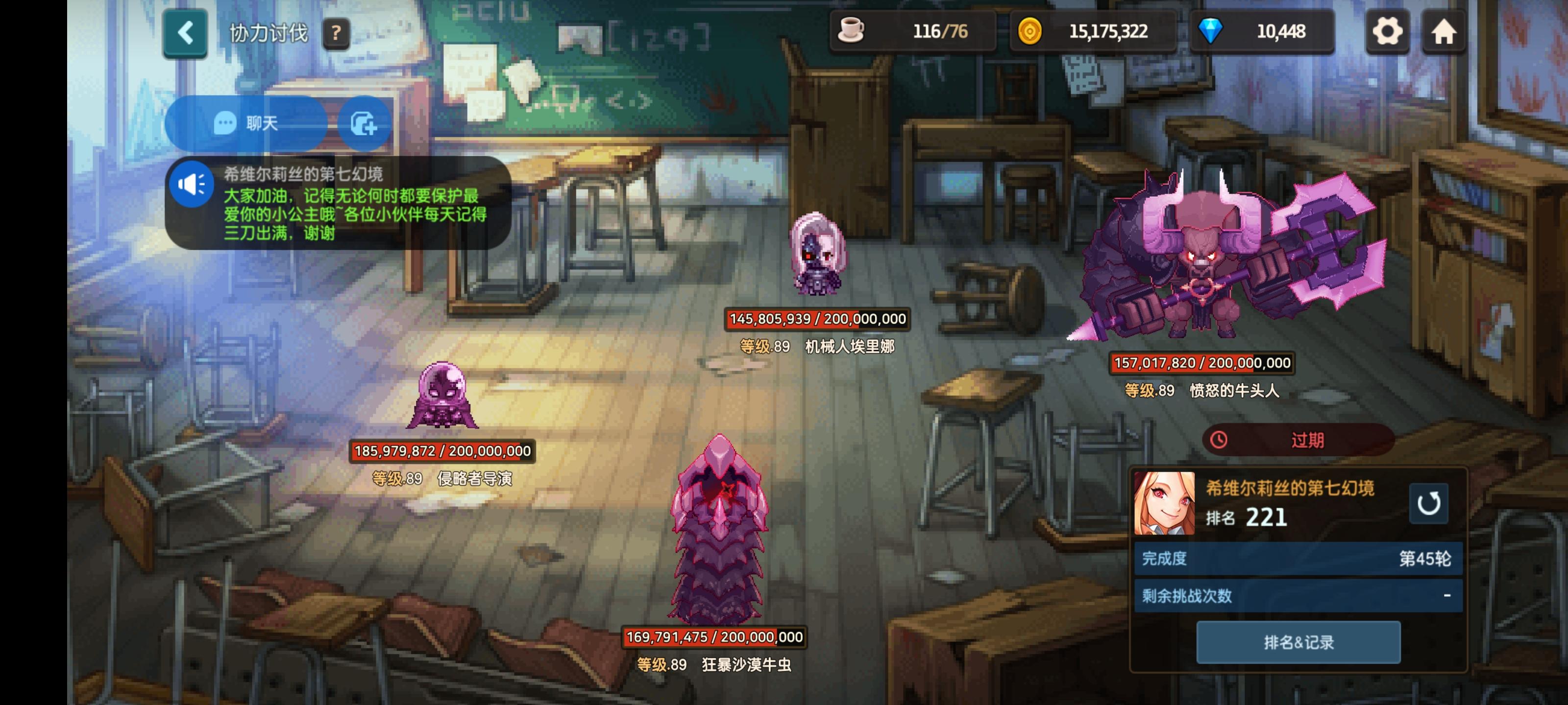 b服221公会希维尔莉丝的第七幻境,招收6e以上成员,每天能自觉出刀的,企鹅群883475476