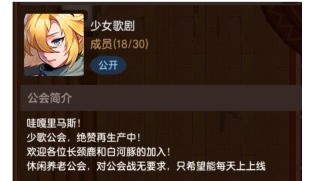 前300开服公会招3个小伙伴休闲公会,要求稳定出勤,缺刀别太离谱 上期有2亿左右伤害有意请加Q群256419097