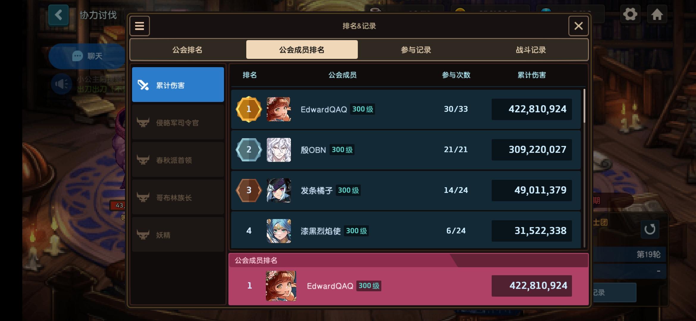 上期前3k,欢迎愿意出刀的新人/摆烂的大佬不用加群,也没有群(主打一个与日常生活分离)公会名:小公主后援骑士团(上面的刀仅供参考,前几天的刀因为boss都是我一个人打的,所以伤害不高)