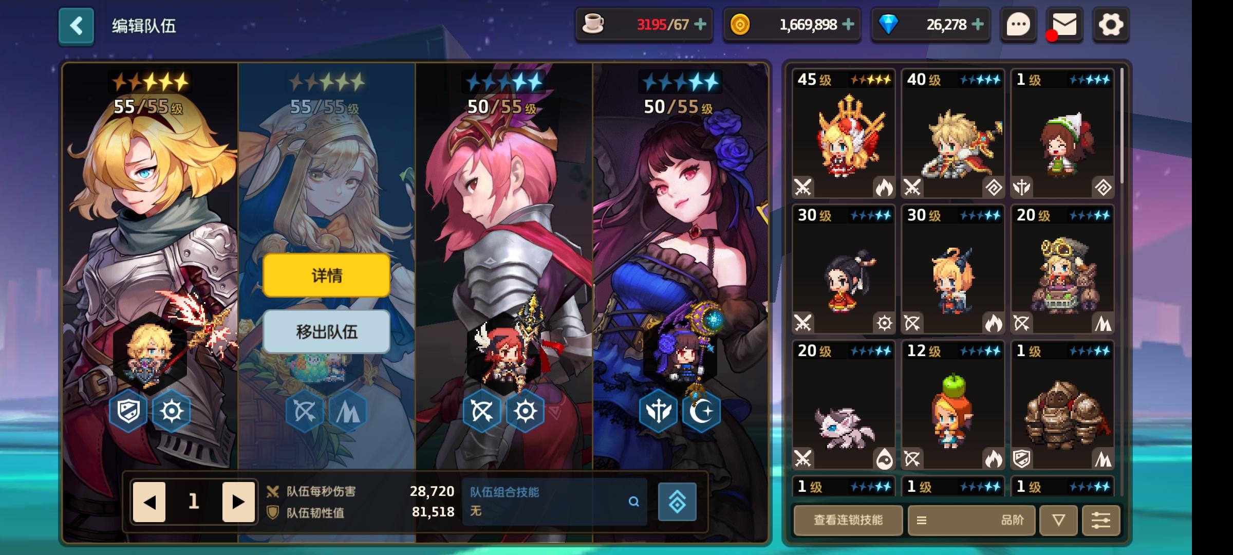 推主线这个阵容怎么样,然后现在体力刷什么,多余的坎特