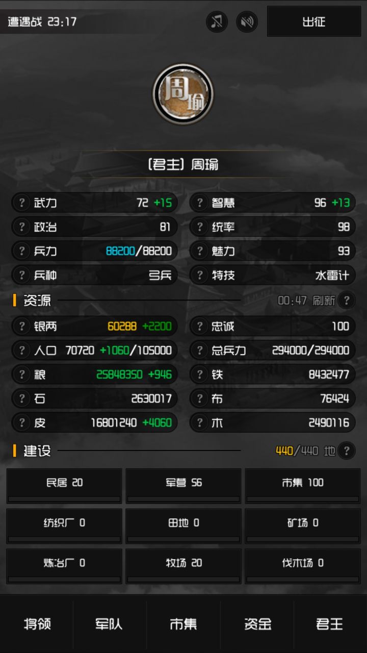 建两百个市场的时候市集可以买的都是七万上限,7要相当于其它每分钟产量2333,这没夺权之前基本不可能。这游戏数值太奇怪,就主建立市集才打的最快。