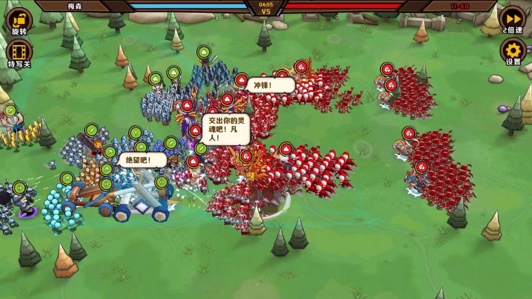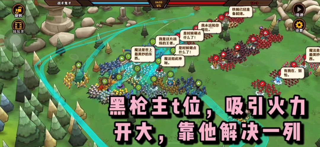 讲解一下过程吧,布阵方面用的是野猪、黑枪双前排(黑枪主t),黑枪cd短可以接敌之后开大,直接赏一波反伤,具体看视频,本意是黑枪开大期间利用猪开大吸引仇恨保护黑枪,实战中猪没有顺利开大,白骑开大了,击飞顺利保下黑枪,接下来残血余部顺利歼灭,此时的黑枪开始浑水摸鱼躲在后面基本野猪担当排面,第二波交战中由于地形关系,近战手短打不到远程输出则在打后面的傻白部队,分散火力导致优势被蚕食,最后只剩三个步兵和小