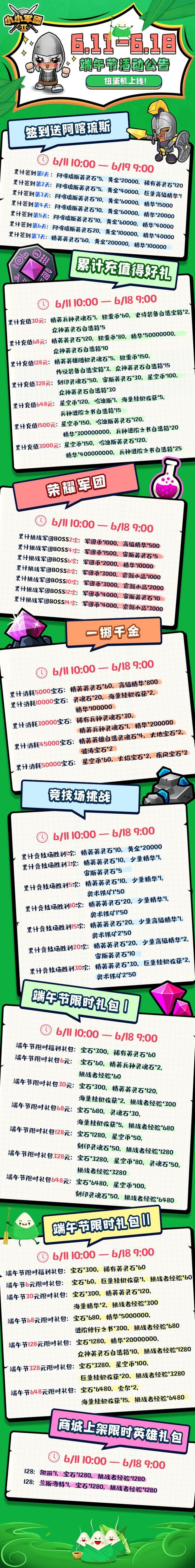 亲爱的领主大人们好——帕诺普大陆将于 6月11日 09:30-11:30 进行例行服务器维护视维护进度顺延时间,请各位领主大人注意游戏进程,避免不必要的损失!新活动将于维护后上线~预祝大家端午节快乐哦!四团军团长-------------------------------------------------------------以下为具体活动内容