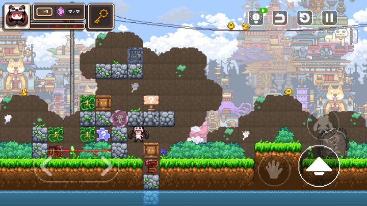 首页这两特性关,一关接近两千次游玩,一关700+游玩次数,却只有群里的大佬能玩出来,作者我看不下去了,出了个教程关,结果又做复杂了。。。现在解释一下首页两关和视频里那关所用特性:按钮控制的飞行器在执行撤回操作时能会刷新,而在飞行器消失时正好在飞行器上方可以跳的更高(4格)利用这两点就能达到视频里的效果此外视频里还出现了在里世界移动吐泡泡状态下的泡泡机上的箱子这种操作,这个操作要掌握时机,一般要