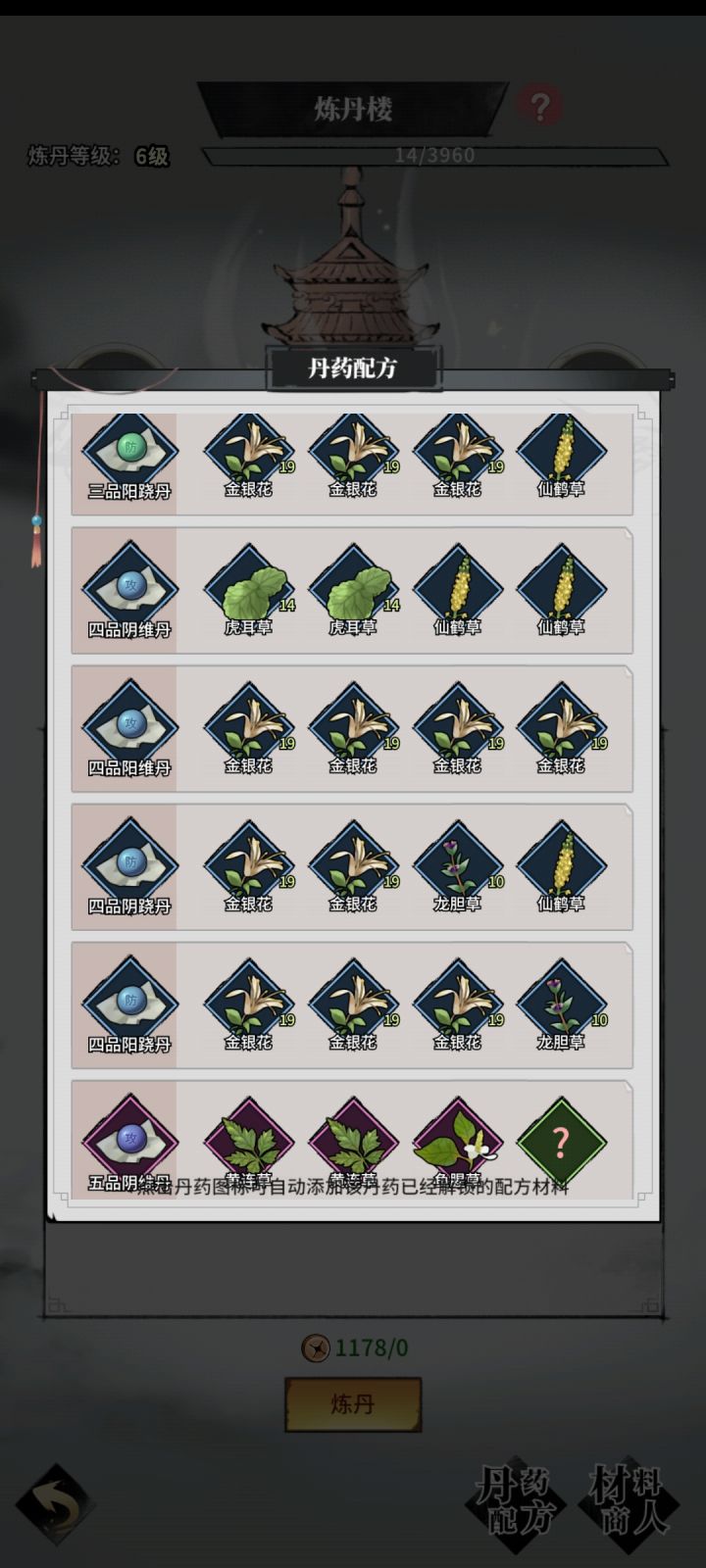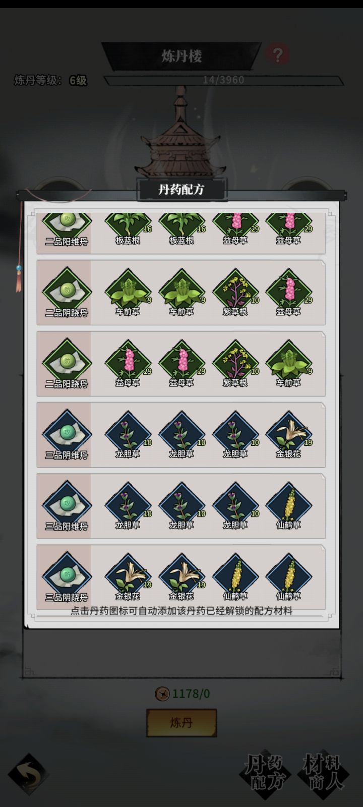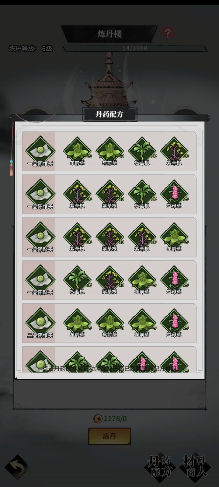 目前只有一半丹方凑合看看