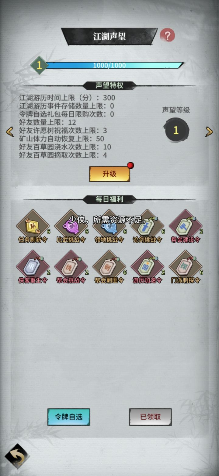 我现在声望够了点升级为什么提示我所需资源不足,还需要什么资源?