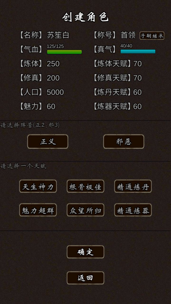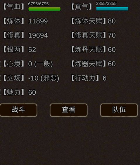 最近看到很多新人不知道怎么玩自由模式(我才不会说是为了仙玉奖励),于是乎,我就来写攻略了。自由模式分上界和下界,这里先写下界。点开下界,会出现几个修真界,选择一个进入(忽略这个名字)可以看到的是上面是你的属性,有了子嗣还可以选择子嗣继承。中间是阵营,不知道为什么邪恶总是比正义强。下面得劲就是天赋了,新人建议选择天生神力,增加10点炼体天赋。根骨极佳则是10点修真天赋。精通炼丹增加15