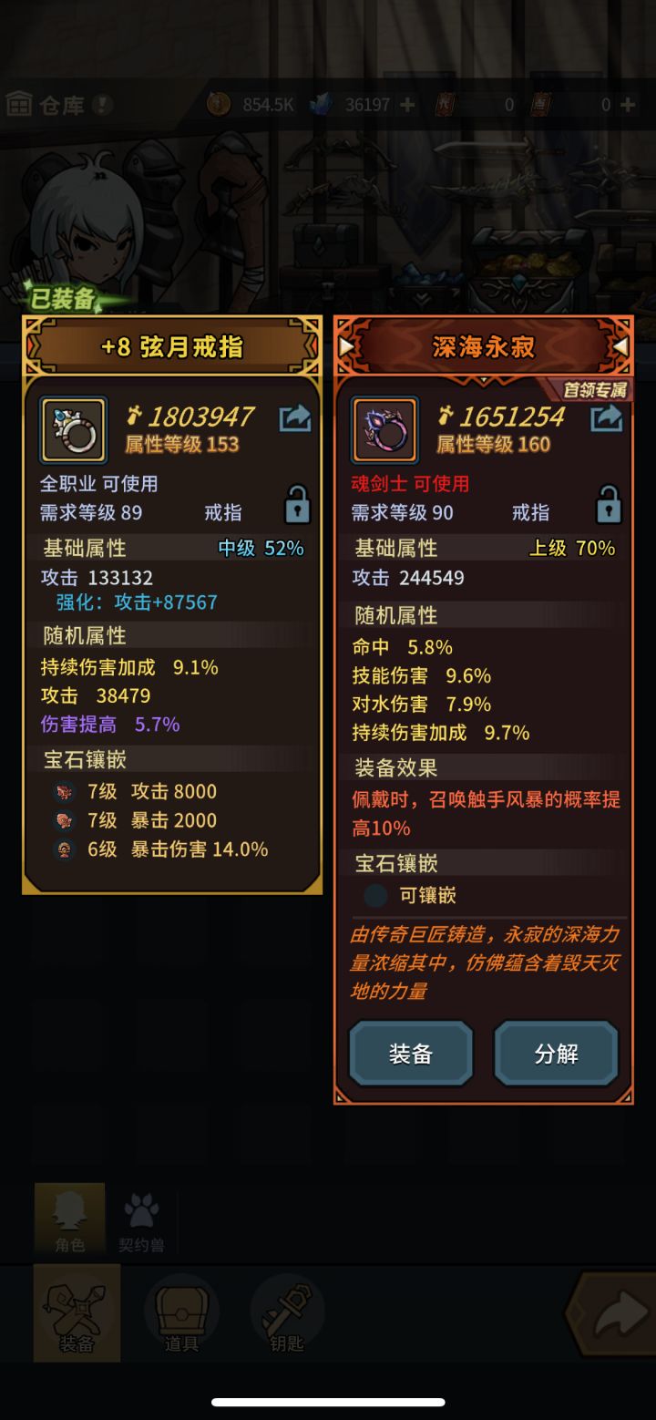 本篇攻略精简,详细属性分析请移步主页上一篇【新区剑士】新区常规2+2+1炼狱醉酒2+噩梦醉酒2+裂石穿云护手炼狱紫晶裂石刀——俗称眩晕刀黑子戒指,先知项链带眩晕刀不需要回复,全程在70%血量以上经过我的测试此套伤害最高,不用更替优化装备无论是光赋予还是常规宠物此套伤害最高无赋予,双注入伤害如图,洗练极品未极限————————————————————————————【老区剑士】