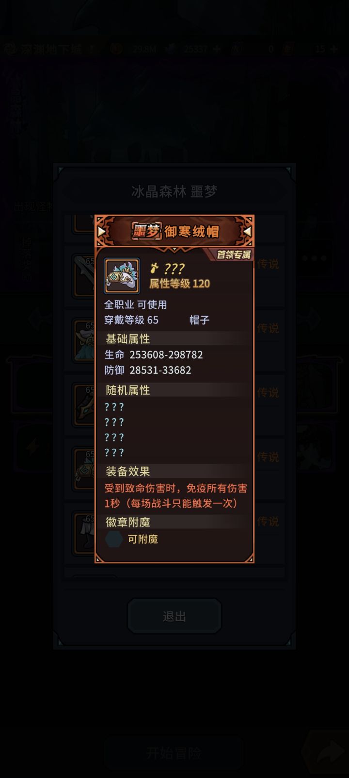 噩梦这个boss两个专属是压根不掉,昏暗+一个词条灯具刷了一周这样,其他掉落出了有五十件以上总之懒的时候就刷这里摆烂,是不是有点夸张了这两装备我都怀疑没加进去掉落,刷两三天没出我只是惊讶而已毕竟我别的装备就没有刷一天不出的昏暗+这灯具我感觉爆率是非常高的,虽然为了刷这个帽子但是这个戒指我也没见掉,刚好两个都是首领专属,如果爆率低那套破烂套装还有两把武器护手裤子都能装一个加强连了