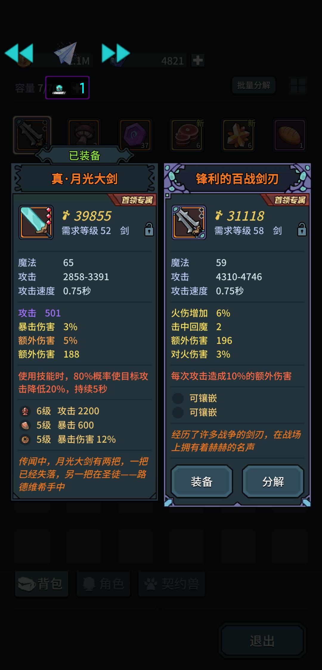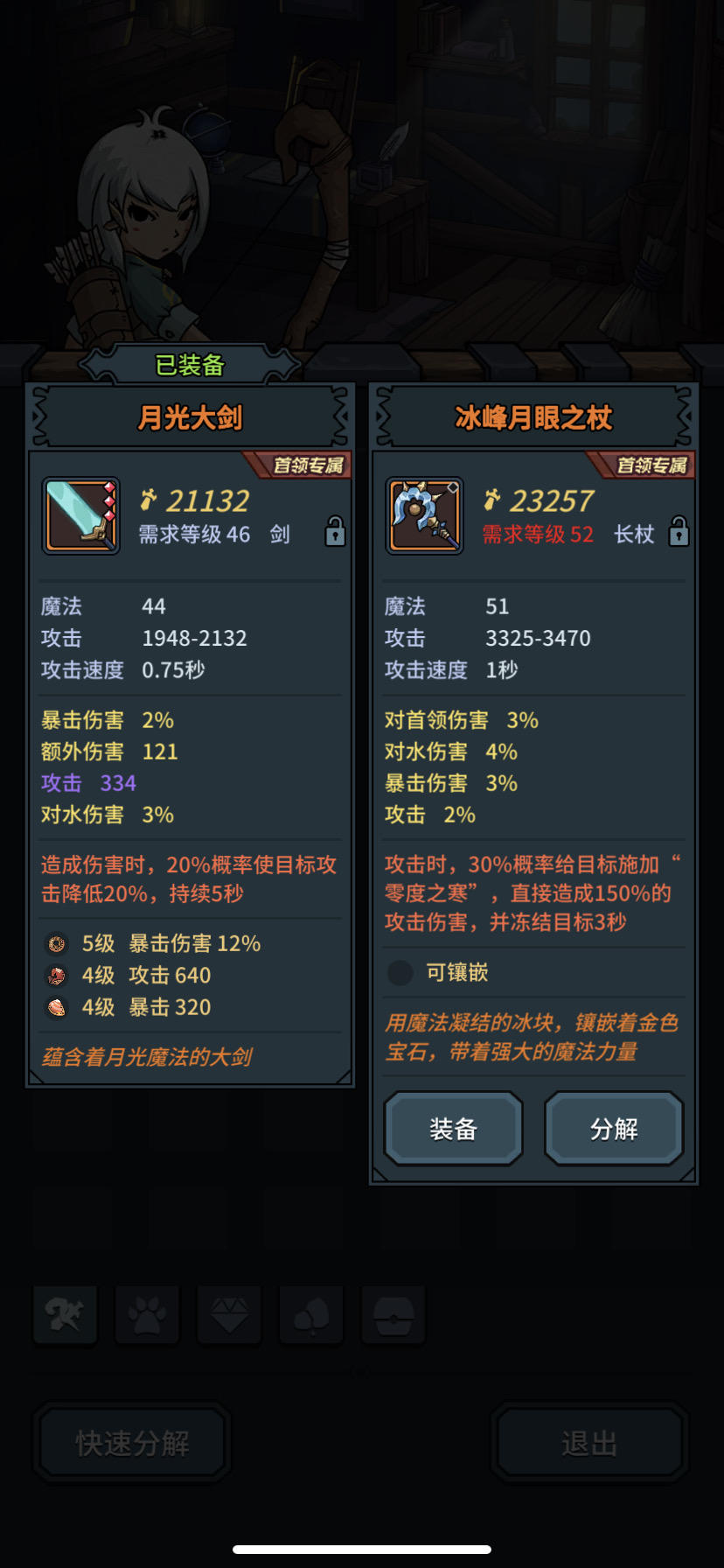 比如带冰杖下本刷小怪,换真,月光大剑打boos
