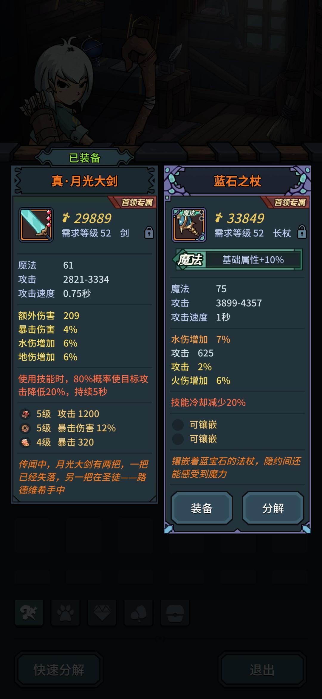 首先是……宠物用什么好,小r,兔子好像很烧钱的样子,小r养得起吗?不然用什么组合?然后就是装备了,武器是真月光好吧?那套装呢?52级要不要换一下?把套装两件换成橙装?还是说都留着,爬高用橙色,升级用套装?在线等一个大佬