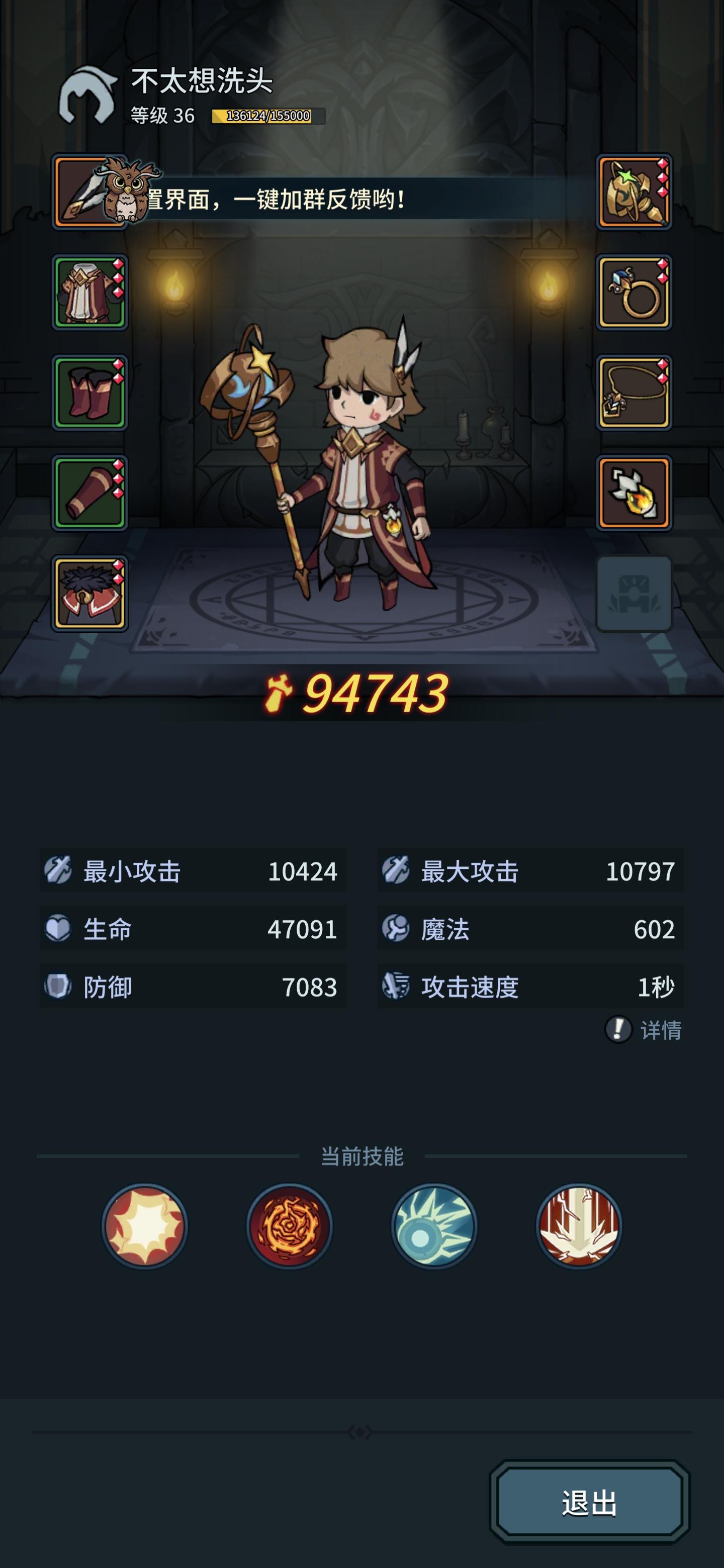 带的露露,火人,嘟比,技能是带的燃烧🔥,但是最后只剩4管血的老板还是把我反死啦,各位大佬有没有什么方式支持或者好的建议,攻击装备也脱了的,求个分享
