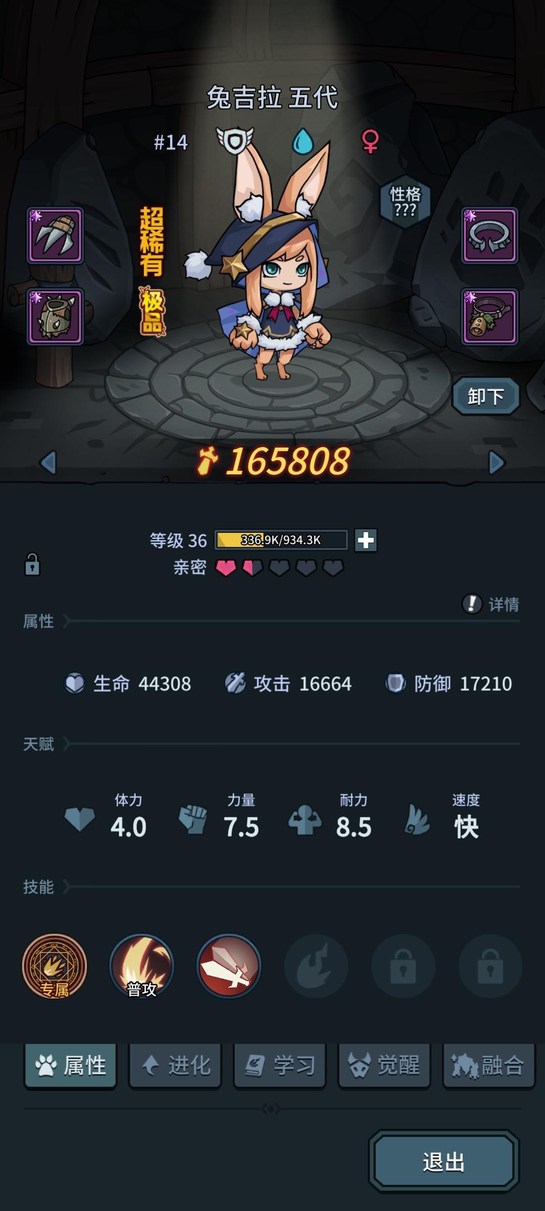 昨天一天肝到40级 露露马上7代 超觉醒材料快够了 给兔子还是露露 最后一个养什么 养火人吗 还有怎么给宠物开后面两个技能格 我试着超融合一下 没用啊 反倒把我厉害的技能替换了