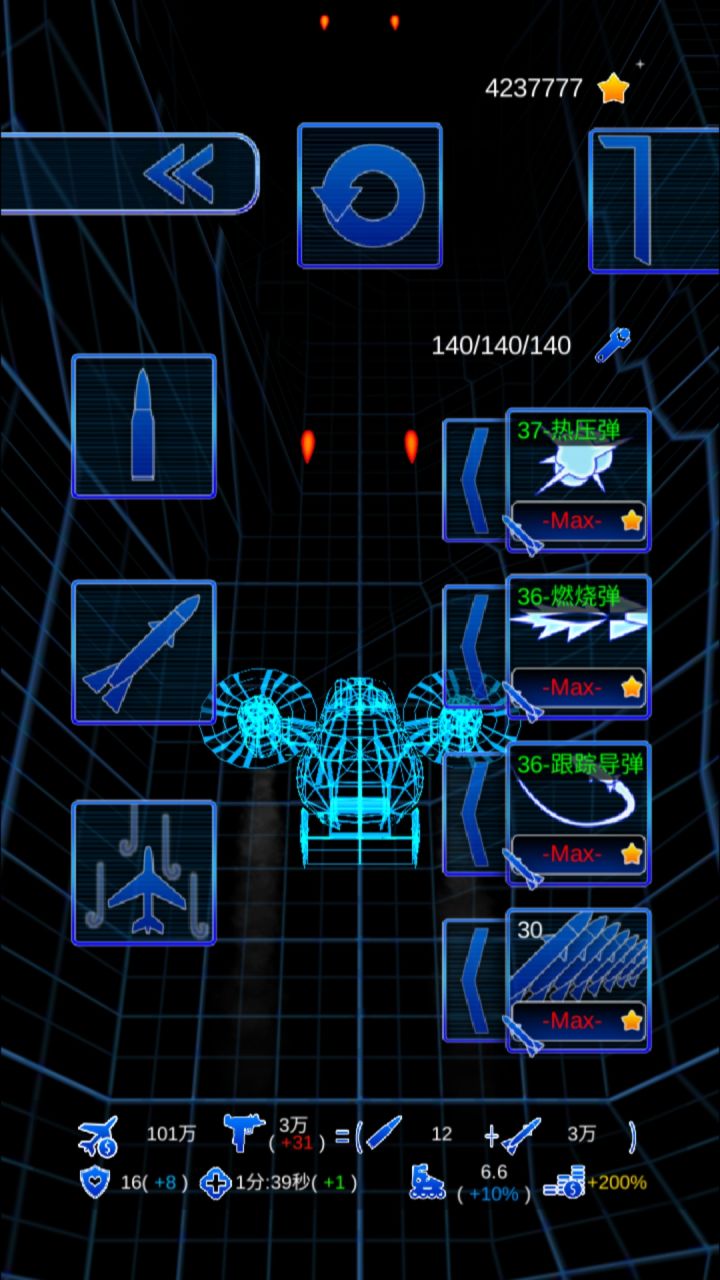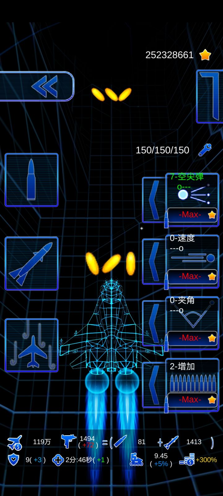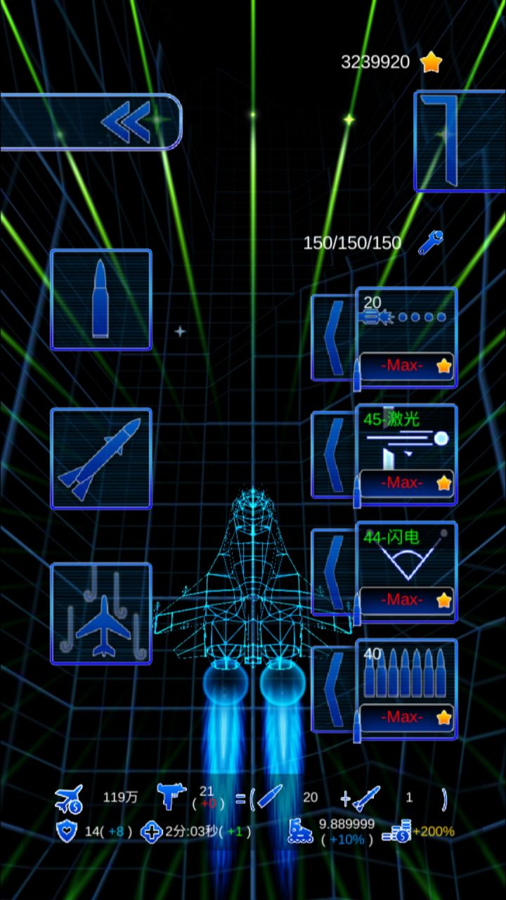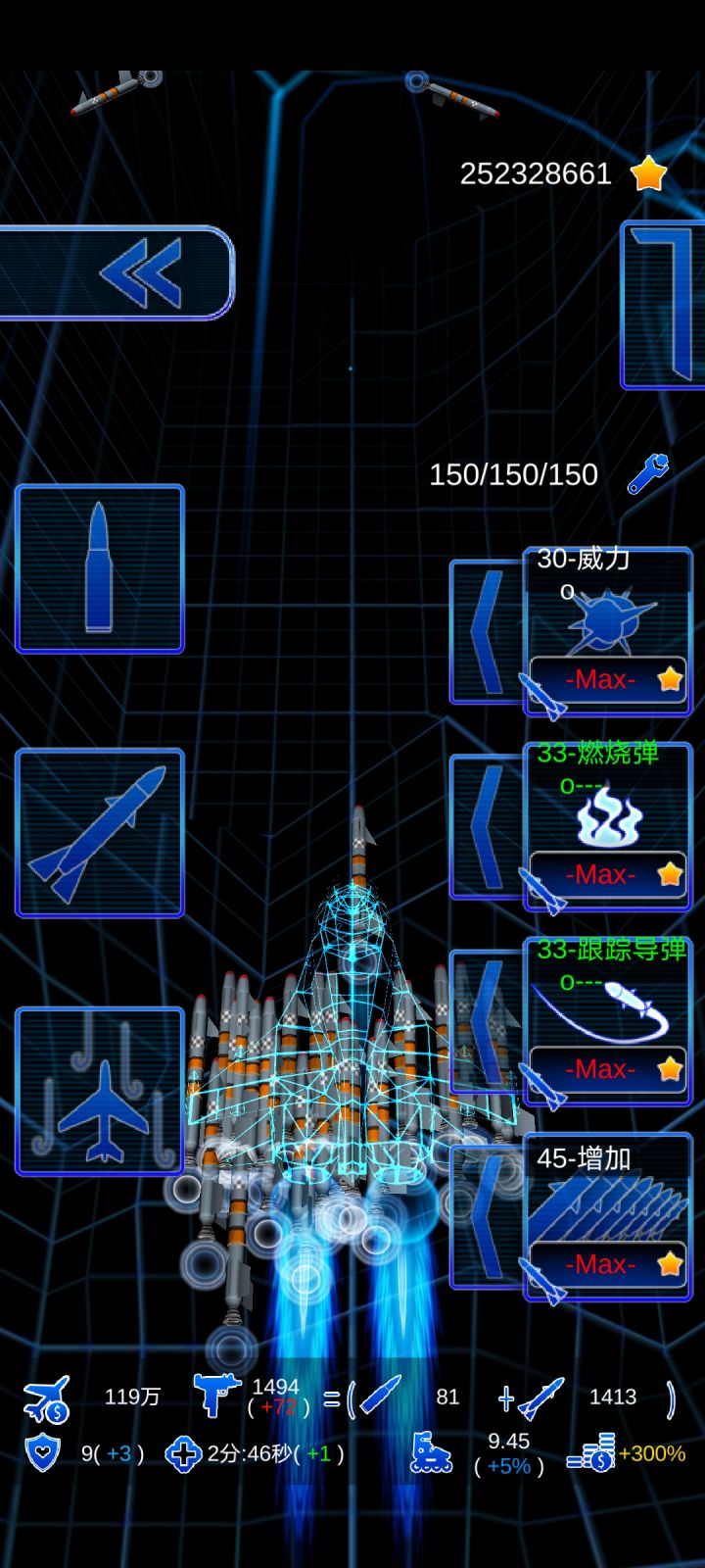 主点威力跟炸弹数量 优点:大范围清屏 飞机基本看不见 无需担心遗落飞机没打到 适合刷等级 打boss 短时间刷星星 缺点:无差别攻击 直升机有时候来吃星星的时候容易被炸死 星星容易丢失 CFK开了以后会卡(必须选择无) 总结:如果你只是单纯的刷等级 就选它 打boss的话就要点机炮10级机炮 5级频率 2级散热 (为了打boss的炸弹空尖弹)刷星星的话只需要拿到第一个100分 炸黄金运输机 直接吃到10000分炸三架就可以溜了 如果boss是球棒 还可以炸死后再刷会 3个核弹下去 球棒boss必死