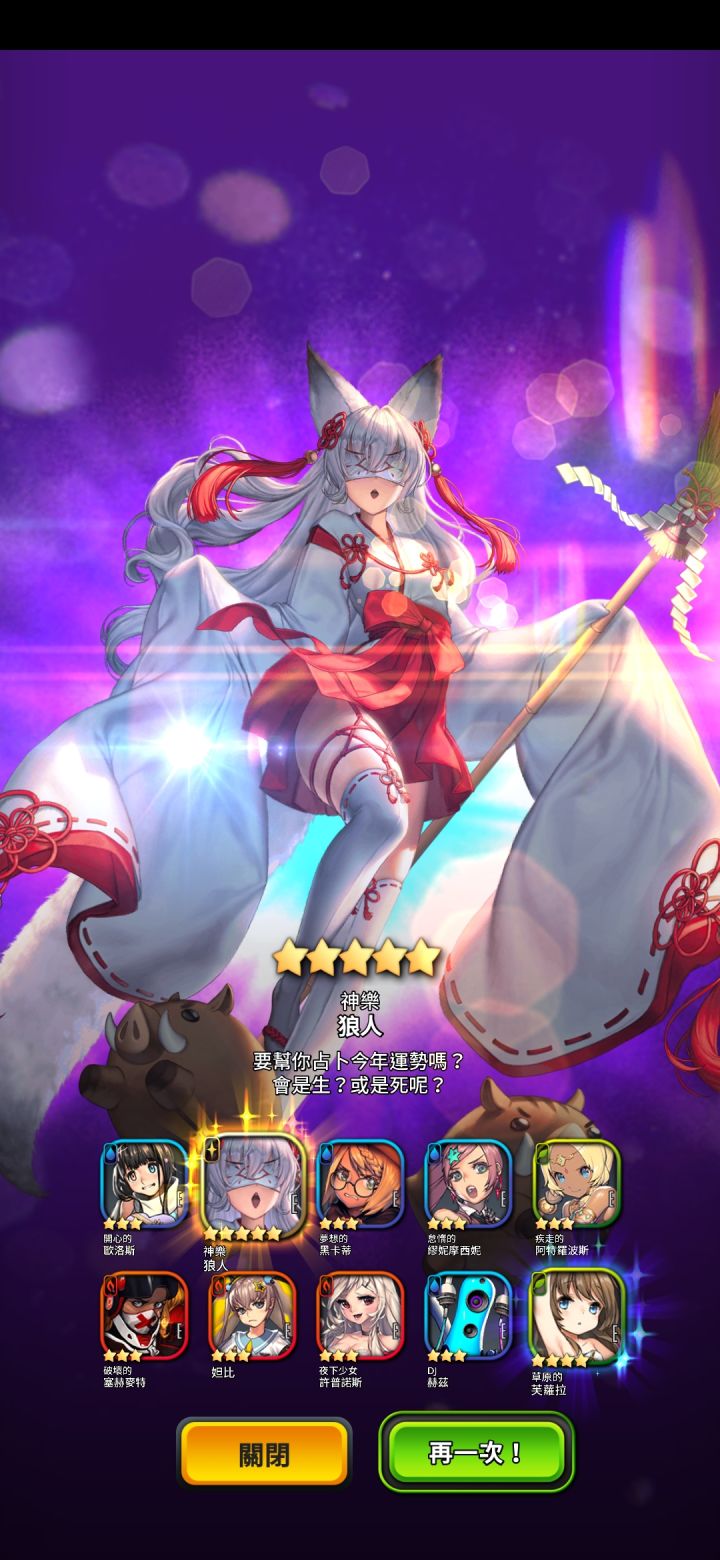 前面四天每天一次这个9%的池子,只出了两个5星,我以为概率又在骗钻,刚刚竞技场钻发了,不死心又试了一下,终于出货了,虽然都不是强力的天子,但是数量多啊