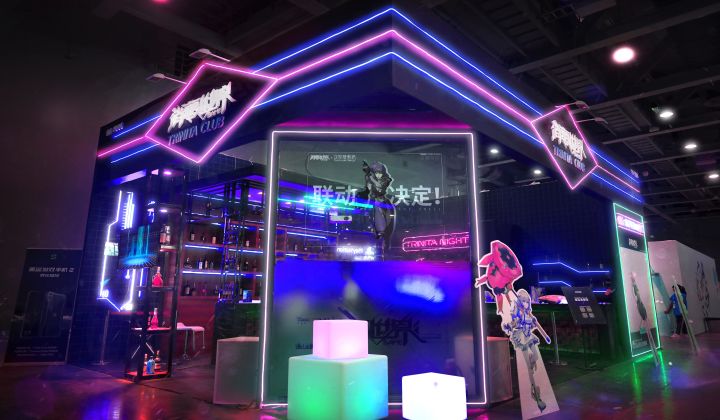 铛铛,广州BW最酷的赛博朋克展位来来袭,请做好战斗准备!那么,正式下面正式开启今天的图文直播叭!首先,一起来康康窝闷崔妮塔俱乐部的船新风格——一家赛博朋克风格的酒吧!整体造型感觉肿么样呢?在这样的灯光装饰下,即使是喝橙汁,会不会也有一种在品尝87年红酒的赶脚捏?接下来给大家康康窝闷很靠谱的志愿者们叭!夏米尔要实名表扬今天的漫展志愿者们,白翼们辛苦啦!再放一张试玩的皂片叭:这次BW也